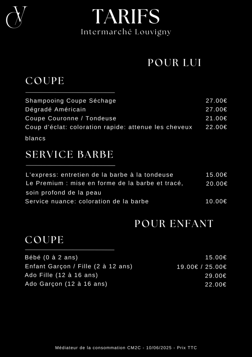 Bienvenue dans votre salon COLIN VAUTIER Coiffeur situé au Centre Commercial Intermarché ZAC Des Longs Courts, 14111 Louvigny.